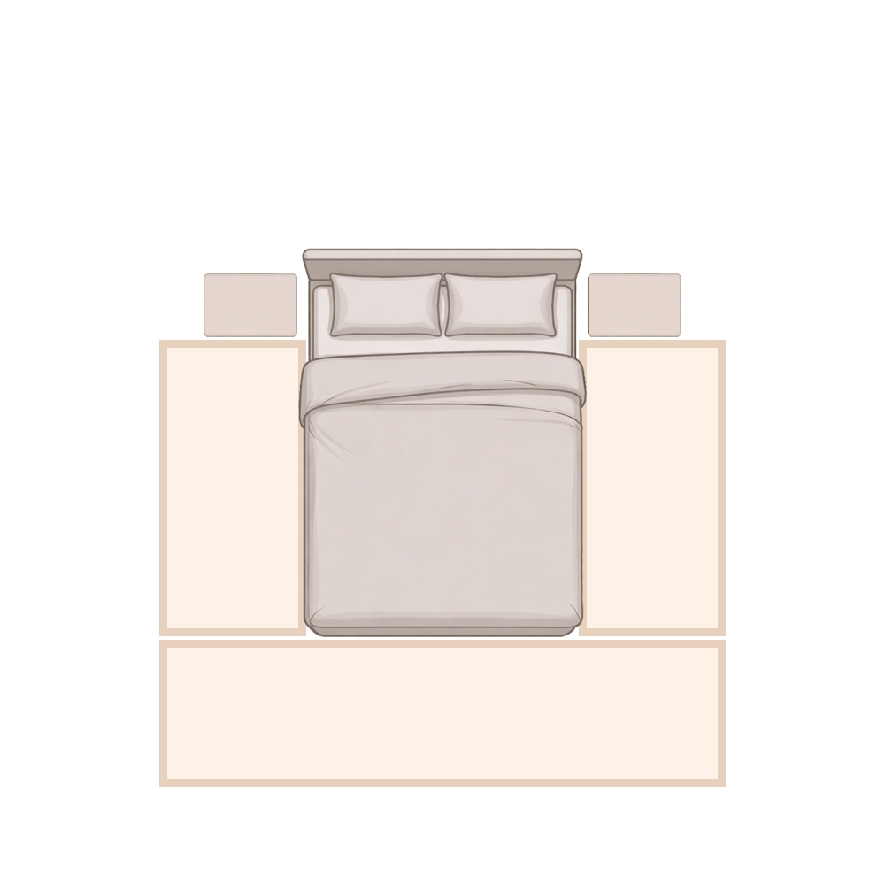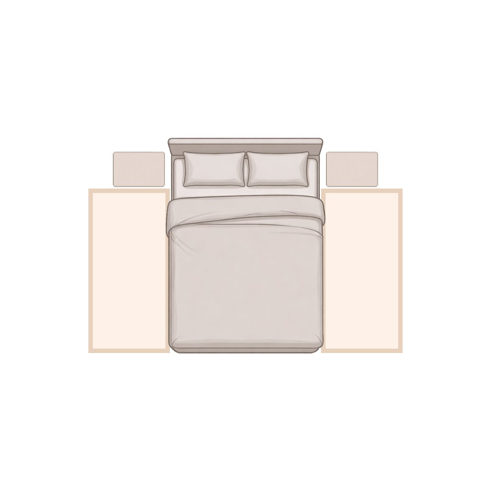 Im Schlafzimmer sorgt ein gut gewählter Teppich vor allem für Wärme und Gemütlichkeit, besonders morgens beim Aufstehen. Absolut im Zeitgeist ist es, das Bett ganz oder teilweise auf den Teppich zu stellen. Wir empfehlen, seitlich und am Fußende ca. 50 bis 80 cm Platz einzuplanen, damit man beim Aufstehen direkt auf den weichen Teppich tritt. Alternativ können auch zwei Bettvorleger neben dem Bett oder eine klassische dreiteilige Bettumrandung eine schöne und praktische Lösung sein.